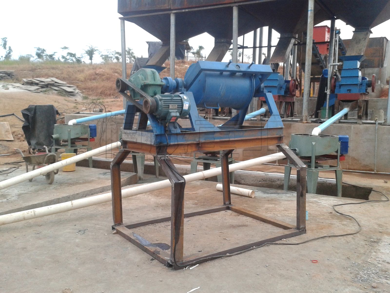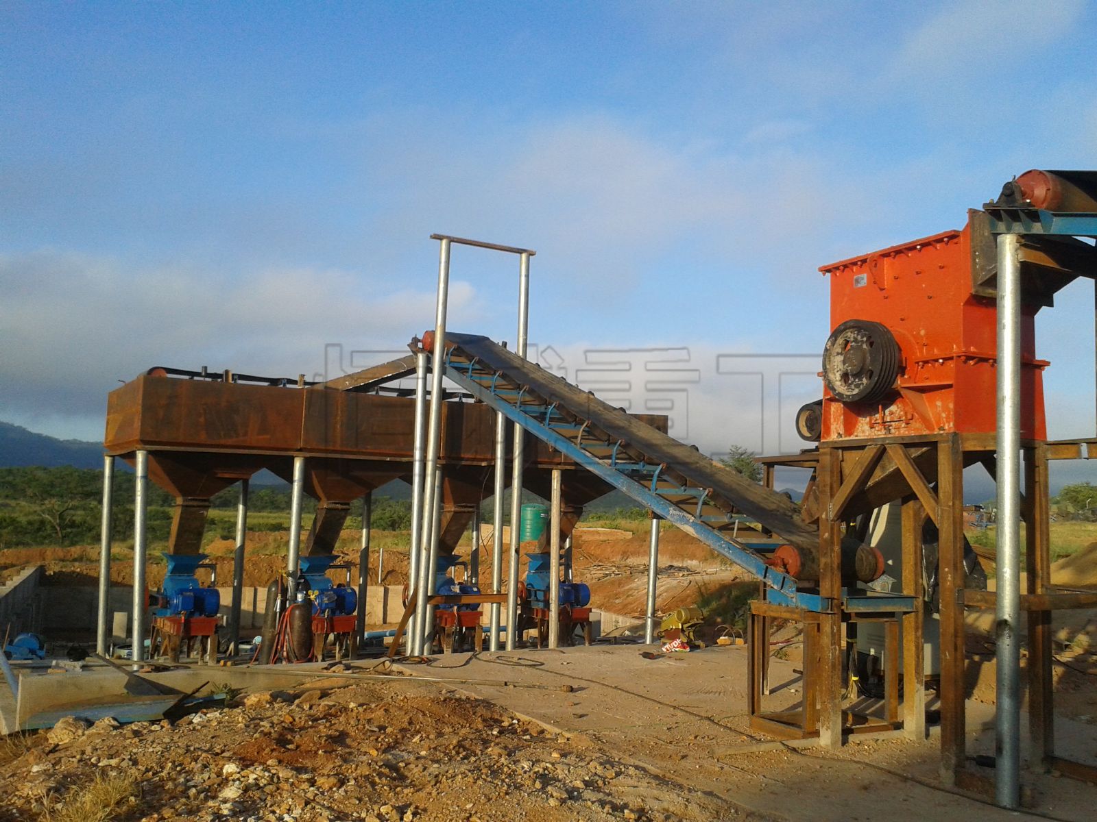 巖金礦通過高效破碎機破碎后進入打砂機進行細破,從而達到進入搖床進行分選。