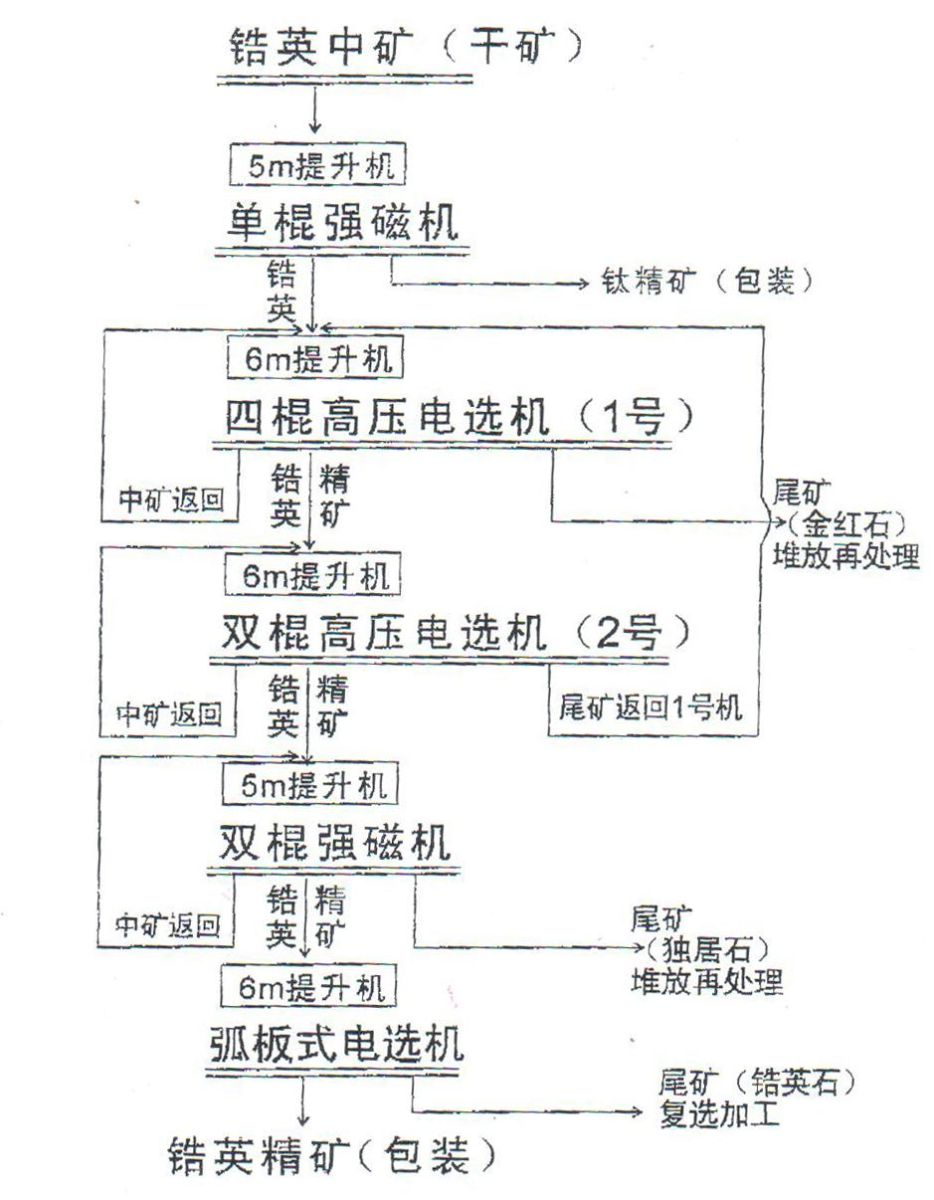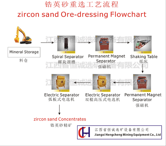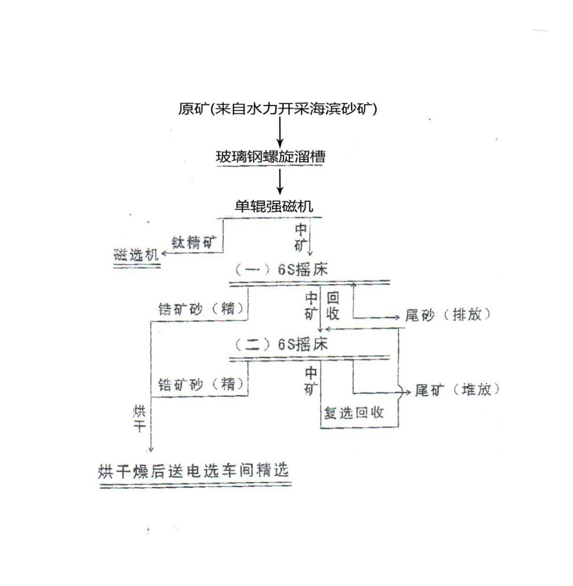 3、干濕磨混合工藝,此工藝是將鋯英砂和配制的復合助磨劑先干磨一段時間,待較粗的物料顆粒達到一定的細度后,再加入水和助磨劑進行濕磨,在相同的球磨時間里,此法的效果最好,不足之處是在球磨過程中增加了加水的助磨劑的工序。  鋯英砂超細粉碎工藝不同,產品質量不同,經濟效益也大不相同。  硅酸鋯超細粉碎工藝流程的試驗研究表明:入磨粒徑較大時,干濕混合法粉碎效果較好。干法超細粉碎使用恰當助磨劑時效果最佳,經濟效益最好。  硅酸鋯超細粉碎試驗研究提供以上3種工藝流程,可以根據工廠的實際情況和用戶對產品的質量要求選擇最佳工藝流程。    至于具體要用到哪些鋯英砂選礦設備,我們需要先看了用戶的礦才能定制生產工藝,所以用戶在咨詢前一定要對自己的鋯英砂礦有一定的了解,或者攜帶礦樣到我公司咨詢相關情。優質的服務和精湛的技術定取得您的滿意,以下是我公司為某客戶配置的鋯英砂選礦設備,供大家參考,有問題可來電咨詢。江西省恒誠選礦設備有限公司  電話:0797-5711595 傳真:0797-5710595